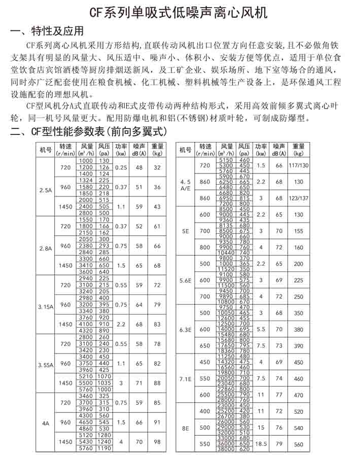 四、CF 系列單吸廚房排油煙風機