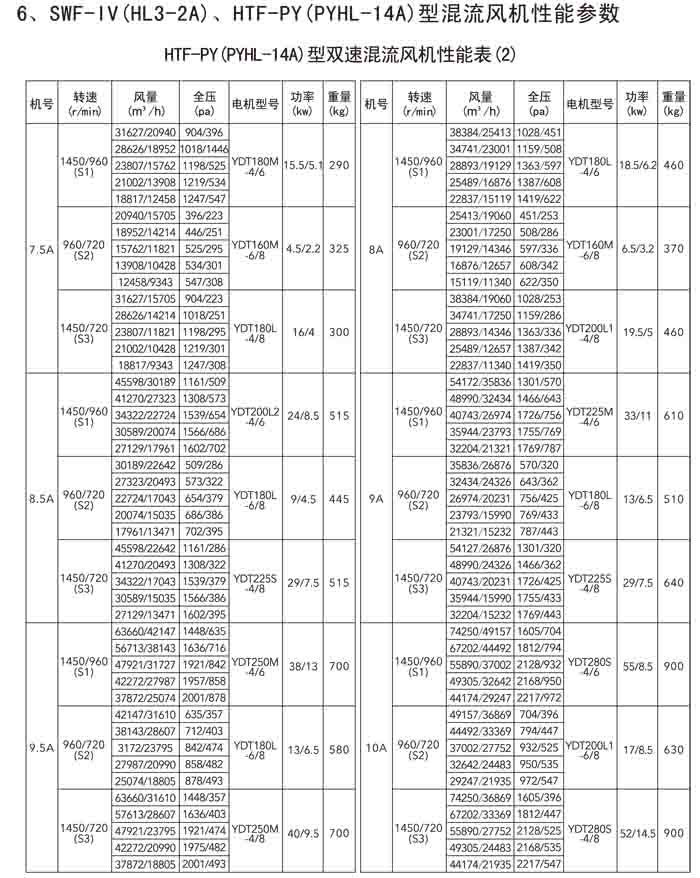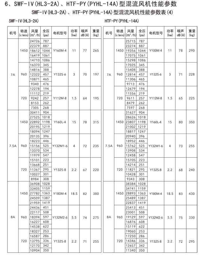 三、SWF-IV(HL3-2A)、HTF-PY(PYHL-14A)系列節能混流風機