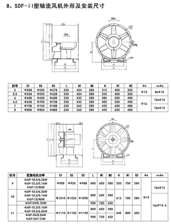 二、SWF(HLF、GXF)-I、II、H 系列高效混流風機