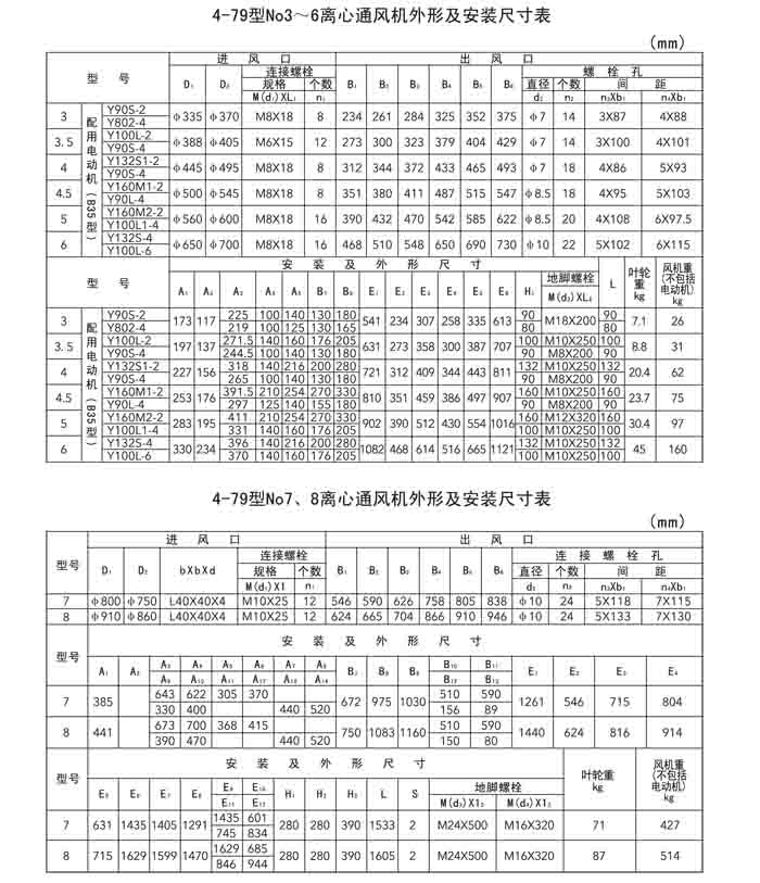 一、4-72(B4-72)、4-79(4-2*79)離心風機